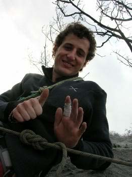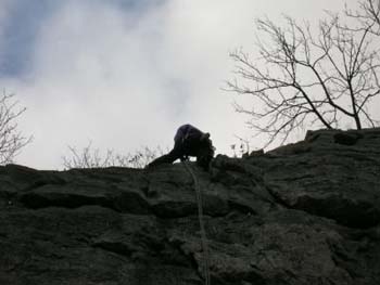 Alla fine della giornata poi č uscito un filo di sole ed ha illuminato un tiro di 6b+ che abbiamo affrontato in moulinette calando la corda dall'alto! ...Da primi per ora neanche a pensarci, ma chissā, magari a fine dell'estate prossima...