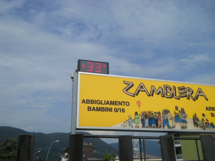 Sto un po' soffrendo e si insinua leggero il dubbio di potercela fare dal lungo itinerario che ho ideato. Vedo il termometro di un negozio e capisco il motivo del mio dubbio.