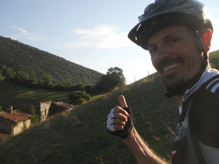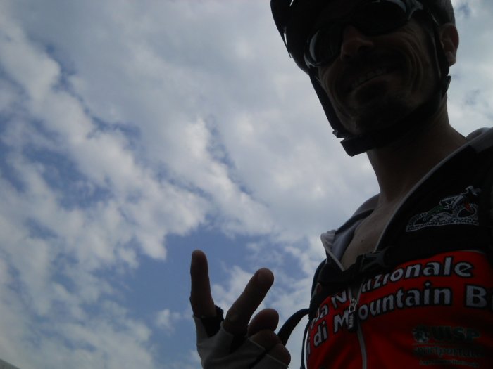 Ormai sono almeno al 140° chilometro della giornata e non sono più il ventunenne instancabile del 95, allora scalo le marce e finisco sia le corone che i pignoni riducendomi spesso a pedalare col 22/36 salvo quando sui tratti sterrati la pendenza diminuisce.