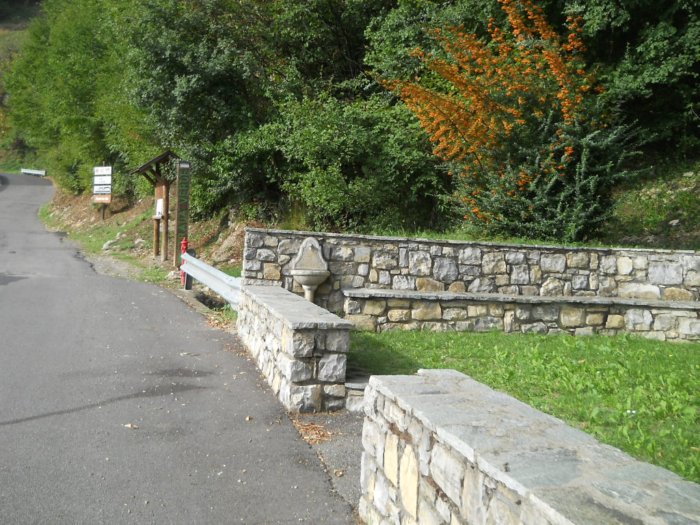 Sta di fatto che girata una curva ho una visione: Fontanella, panchine e pure un tavolo!