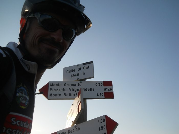Arrivo al Colle Dedine e le emozioni ormai sono all'asta dei ricchi! Le quotazioni sono incalcolabili! Pedalo, scatto foto, mi guardo in giro e non è che mi fermi troppo a riposare. Le gambe girano ancora benino e riesco anche ad evitare una crisi di fame anticipandola con qualche fetta di pan bauletto!