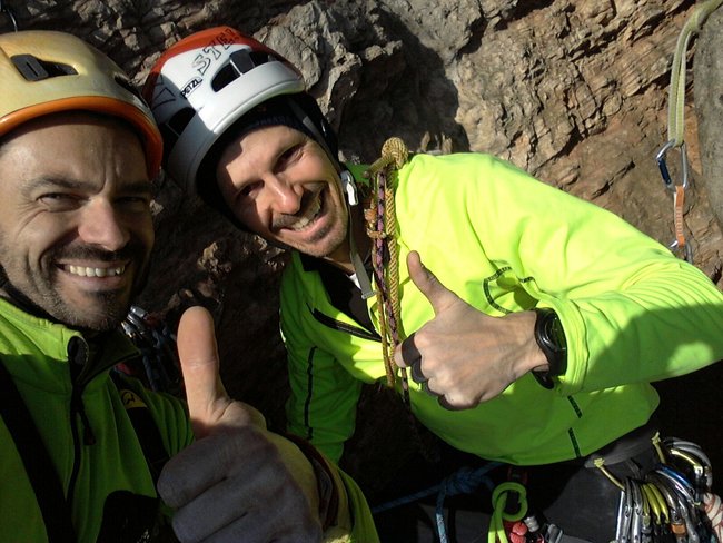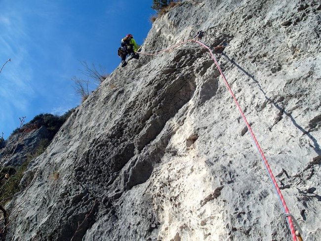 Sia io che il Toso abbiam bisogno di riprendere ad arrampicare per gradi e questa via è ideale per ricominciare!