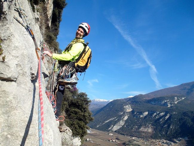 Andiamo ad attaccare una delle vie meno impegnative della Parete San Paolo appena dopo Arco di Trento.