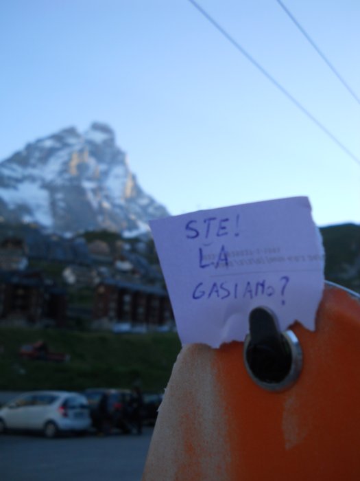 Sabato sera, sono solo come un cane in una piazzola qualunque della Valtournanche a dormicchiare nella mia Pandina con in Cervino stagliato nel parabrezza.