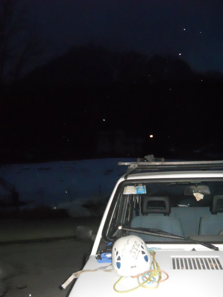 Alle 7:07 sto partendo ramponi ai piedi e una picozza. L'altra la lascio attaccata allo zaino.