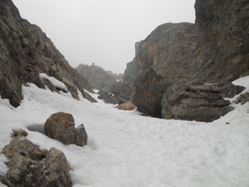 Sto pensando al Canalone Caimi, finalmente, era ora! Ho trovato il passaggio. E' quasi banale se lo conosci e probabilmente cambia secondo le condizioni, come sempre.