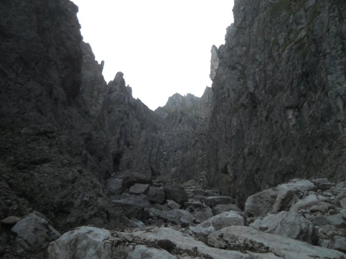 Le paretine che sovrastano la metà del canale mi davano la certezza che, progredendo in solitaria, sarei caduto, vedevo il vuoto e nient'altro.