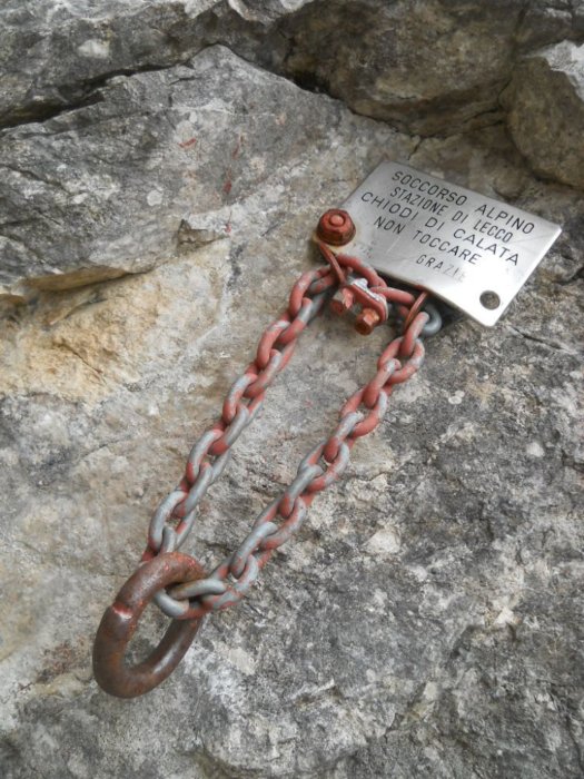 Ogni tanto trovo i fittoni resinati e qualche vecchio spit che ricordo benissimo dall'ascensione invernale...