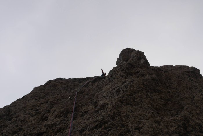 Mentre tirava un vento gelido e con la parete bagnata ho voluto salire io e mi son trovato a gustare la situazione di equilibrio instabile e insensibilità.