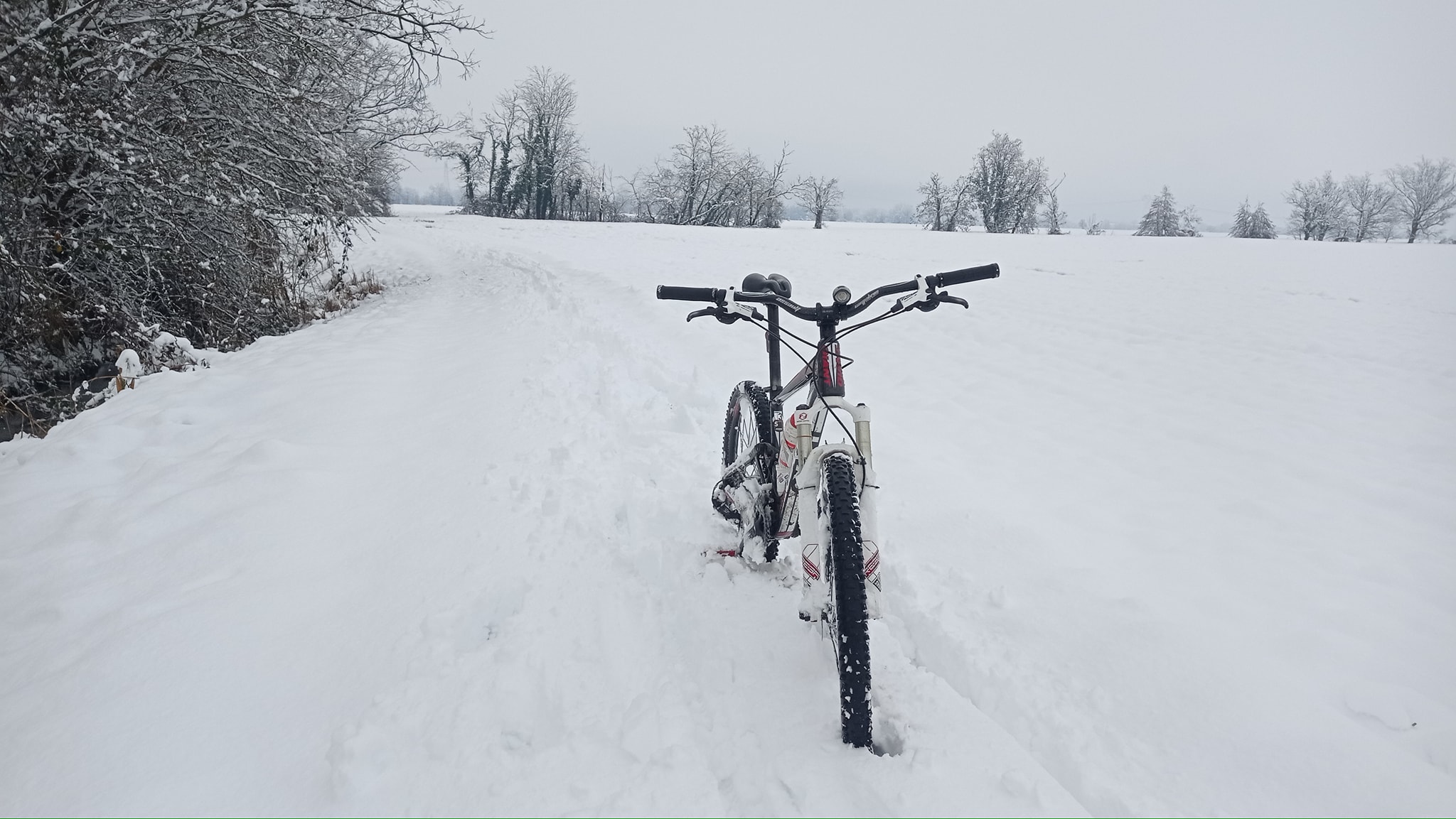 Ho pedalato due ore e mezza e mi è sembrato di fare lo Stelvio! Una faticaccia con venti centimetri abbondanti di neve in campagna!