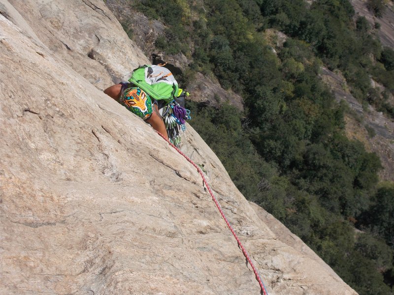 Sarebbe bello entrarci nel mezzo ma non siamo Supermen e Wonder Woman, quindi ci concentriamo su questo viaggio di una quarantina di metri (o comunque una trentina abbondante) di passi di 5a che tornano ad essere chiodati un po' lunghi!