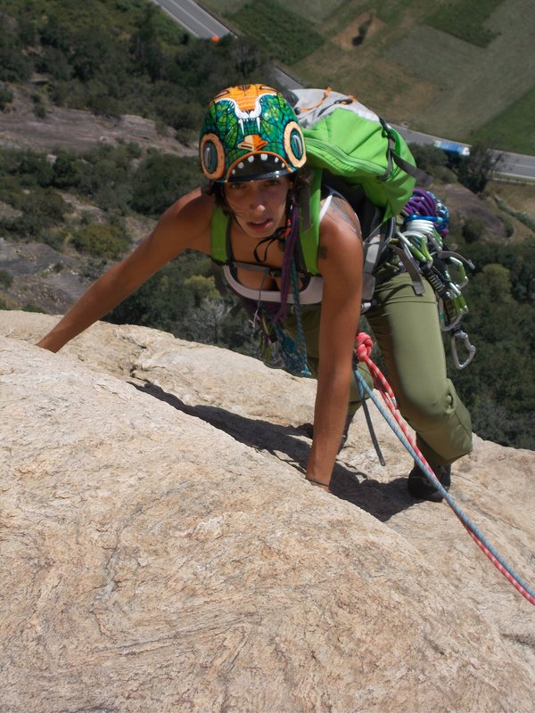 Nau, è il tuo turno! Allunga le protezioni e fatti questo bel viaggio che all'inizio va un po' a zig zag! Poi su dritta verso il cielo! I passi di 4a e 4b ci sono. Le traiettorie non sono quasi mai obbligate. L'unica difficoltà per Nau saranno le folate di vento!