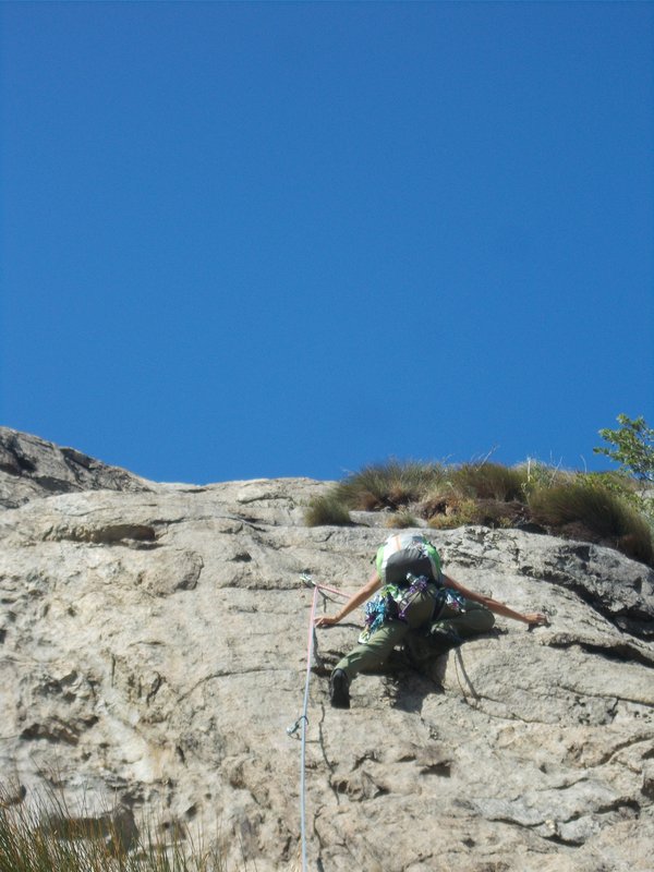 Il traverso comunque è facile anche se affrontarlo sprotetti è ovviamente rischioso in caso di caduta. Detto questo ho preferito rischiare io ed evitarlo a Nau.