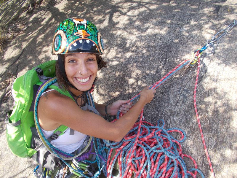 Nau mi segue benissimo e quando è quasi in sosta le racconto l'errore. Non avrei dovuto seguire tutta la bellissima lama ma, ad un certo punto, uno spit sulla destra porta nella giusta direzione della sosta.