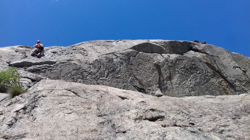 Nel frattempo il paretone va tutto al sole e saliamo in un bagno di sudore e afa!