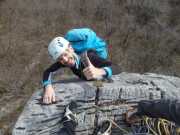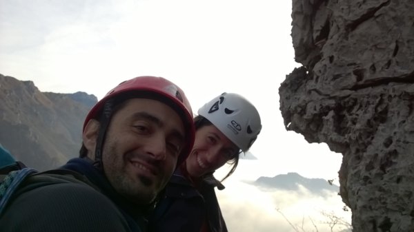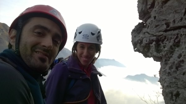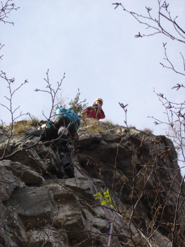 Mentre Lauretta completa la prima lunghezza di 4c in scioltezza, io ne approfitto per alimentarmi...oggi sarò un pozzo senza fondo! Si vede che le mie tenie si sono accoppiate e ora hanno la prole da mantenere.
