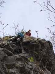 Il secondo tiro è una formalità. Un pelo di attenzione all'inizio e poi una breve camminata fino all'attacco del prossimo tiro dove Lauretta sosta su un albero e io su un masso/spuntone.