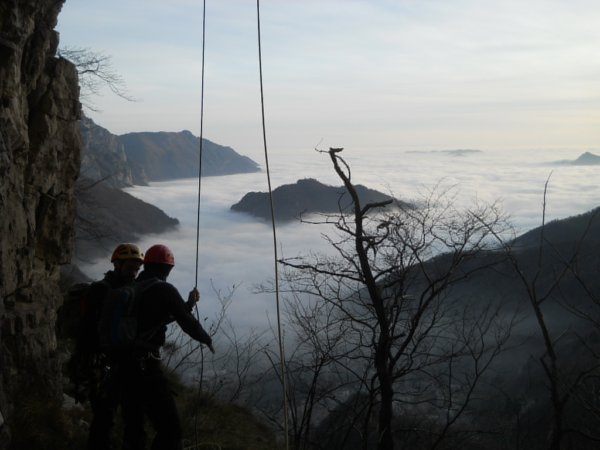 Son così anestetizzato dalle endorfine che non mi accorgo nemmeno che il Toso monta la doppia di discesa...pensavo fosse solo andato a curiosare dove attrezzarle...