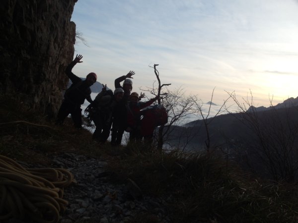 Continuiamo poi in discesa su comodo sentiero fino ad incrociare la base della via Lunga, recuperare uno zaino che abbiam lasciato e tornare a Ballabio a festeggiare.