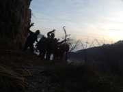 E' bellissimo stare qui tutti insieme alla base del Dito mentre chiacchieriamo facendo andar le mani a filar corde e preparare il materiale in modo da partire al più presto.