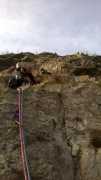Salgo bene fino al tratto di 6a che continua per qualche metro in leggerissima diagonale a destra.
