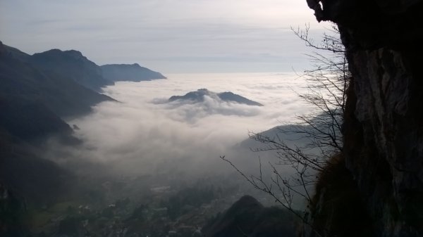 Lo spettaccolo dell'inversione termica continua a regalarci da ore quadri fantastici dipinti sulla Valsassina.