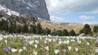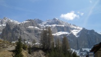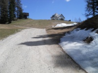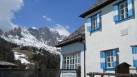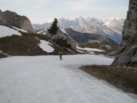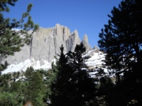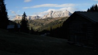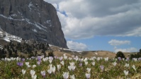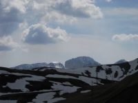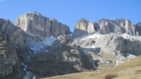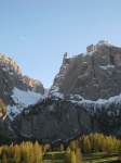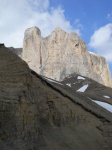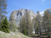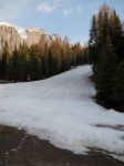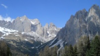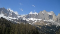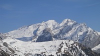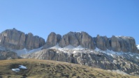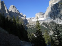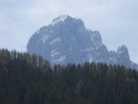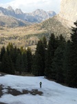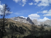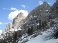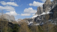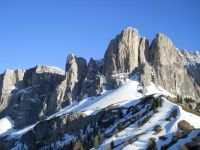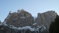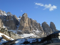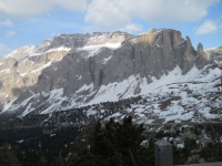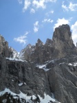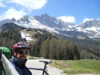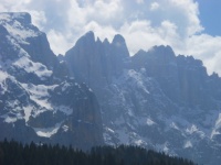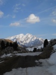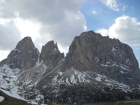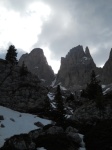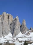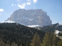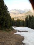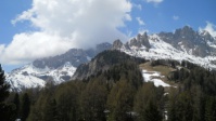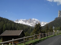 Superato il Passo di Costalunga si vede la Roda di Vael con il Passo delle Coronelleinnevato sulla sinistra