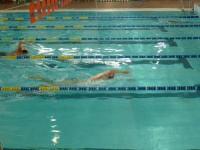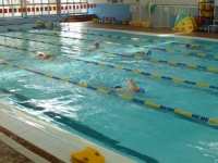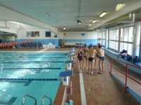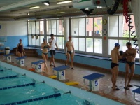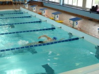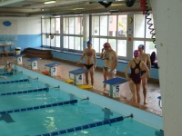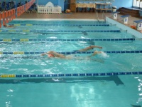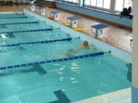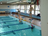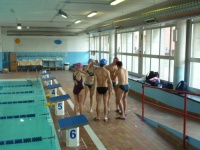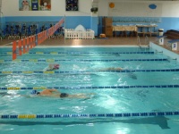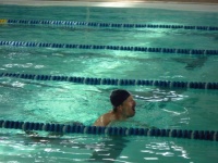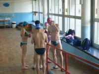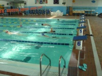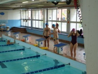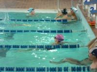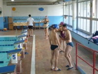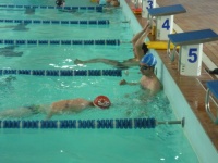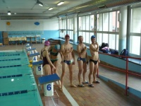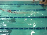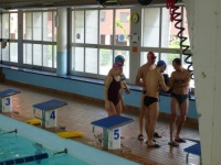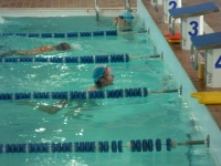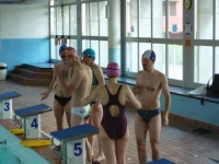 Bea completa le sue vasche. Siamo solo in tre in acqua. Anche Maria Antonietta sta per finire la sua frazione di nuoto...