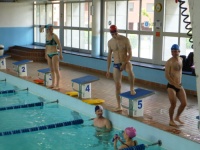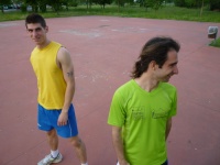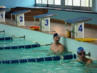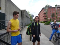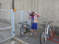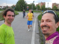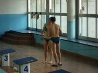 Io sto completando l'ottava vasca e Michi ne ha fatte 20 ed esce pronto per la frazione di bicicletta
