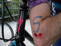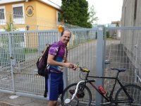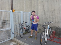 Eccomi all'arrivo in Piazza Rossa ...estremamente soddisfatto nonostante la caduta e con un pensierino alla bici danneggiata...