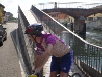 Eccomi dall'altra parte del Naviglio che pian piano constato i danni della caduta...