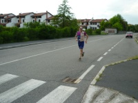 Dopo una sezione veloce di bicicletta Gabri esce dalla zona cambio bici-corsa