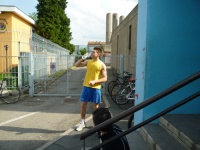 In basso a destra l'impegno di Emanuele a curarci le biciclette fuori dalla piscina prescelta