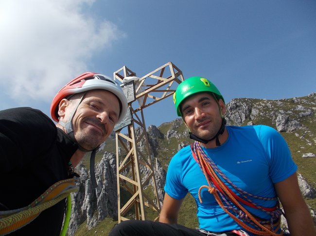 Ha fatto da primo i tre tiri della normale che per lui ormai è molto facile e poi abbiam fatto un tiro ciascuno sulla Bramani-Dones!