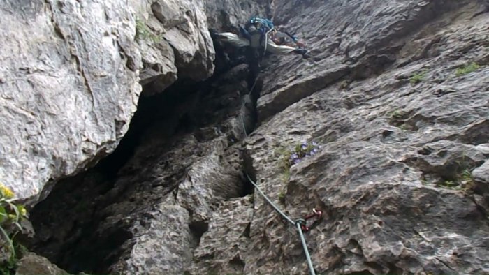In sosta, ammiro i fiori, manovro velocemente e con troppa tranquillità accorgedomi, mentre attrezzo la seconda discesa, che sono slegato dalla parete.