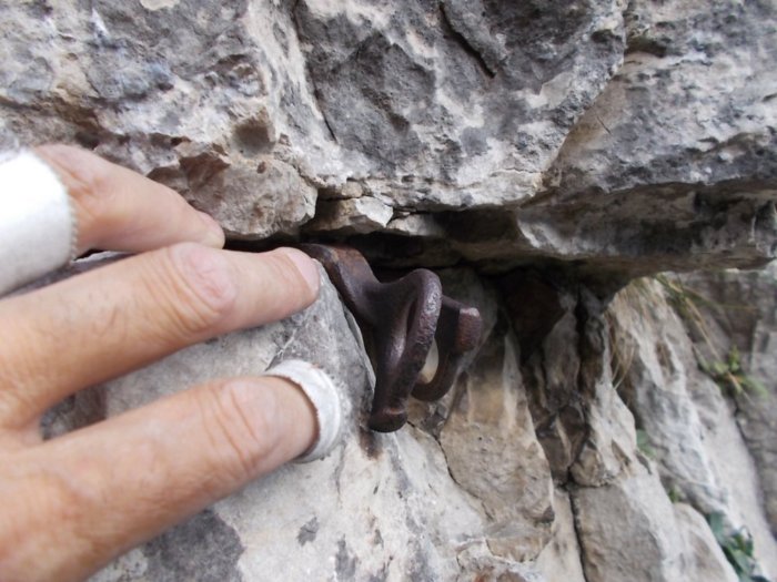 Comincia su roccia un po' gnè gnè che poi diventa bellissima. Si trovano chiodi vecchi, un paio di spit e un paio di fittoni resinati o tre.