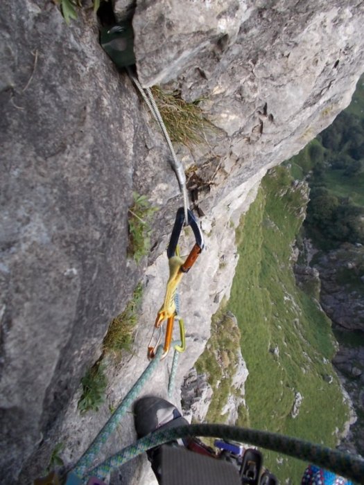 Integro le vecchie protezioni con un dado che uso sempre volentieri, con sensazioni che fanno a cazzotti tra loro e che io lascio fare, regalatomi da una persona molto importante dopo un lavoro d'equipe e poi con il mio friend del 3 Santo Subito! Per il primo ringrazio, lascio fare e per il secondo canto l'Alleluya come quasi sempre e, in sintesi, mi sento meglio dopo che avevo rinviato in 3 chiodi vecchi ma veeeecchiiii ...comunque buoni, forse, ma non ho con me il martello per poter verificare! Due però li ho uniti...
