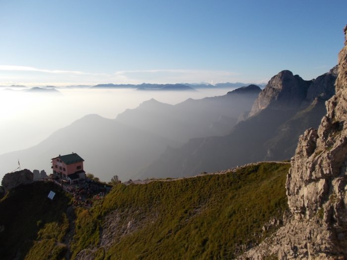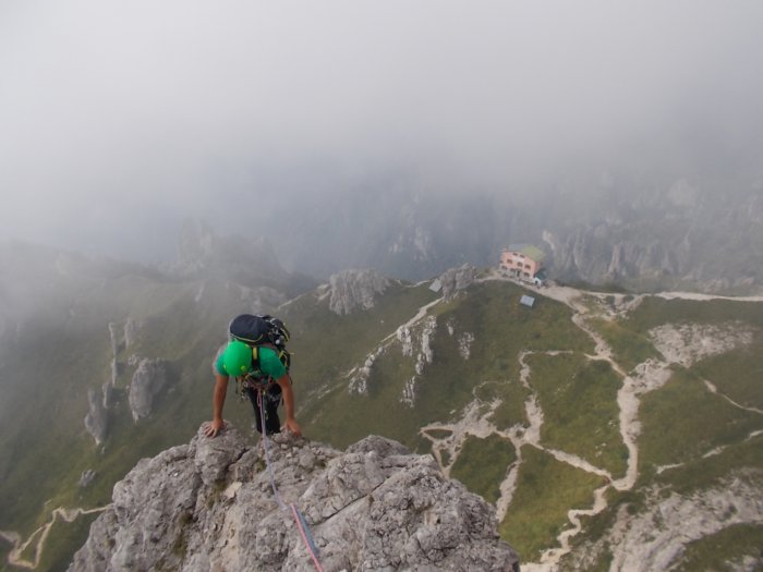La mattina dopo salutiamo il Maurino, i rifugisti tutti, le musiciste, figlie, fidanzati, staff musicante e ci avviamo verso il gruppo del Fungo e verso il mio disastro giornaliero personale che si risolverà comunque in una buona giornata che, vista da poco in dietro nel tempo, sarebbe stata comunque strabiliante e positiva...