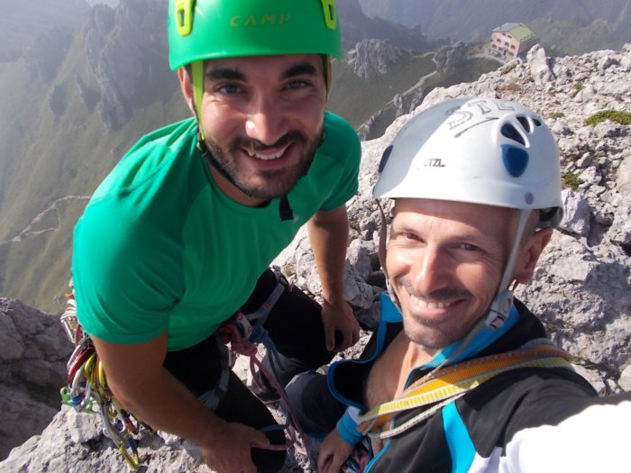 Simo e Ale affrontano il famoso passaggio dall'anticima alla cima del Campaniletto