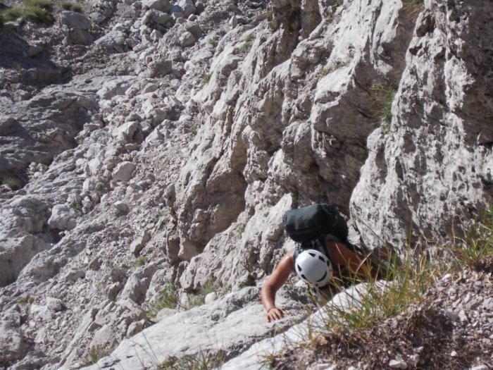 L'antica paura non mi fa mollare la lama ma dovrei salire veloce e cerco invano altri maniglioni enormi che così enormi non sono...ma non sono neanche così male e i piedi son buoni...di certo son passi pericolosi e non bisogna cadere!