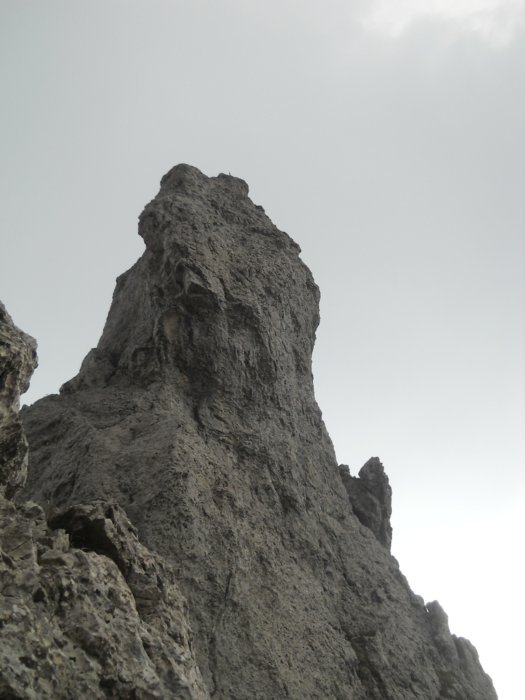 Siamo sotto la cima del Cinquantenario. Manca un tiro all'esile cuspide.