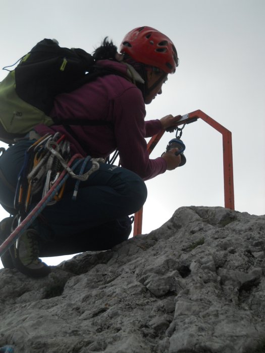 Ora posso pensare a sistemarmi bene in sosta, mettere il reverso, recuperarla e aspettare il bacio di vetta che , insieme a lei, arriva veloce e puntuale!