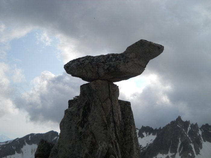 L'unico che vediamo e lo vediamo da un po', è piuttosto grande e scuro. Ci finiamo sotto e vediamo che in cima, un affilatissimo spuntone ha un cordone girato intorno!