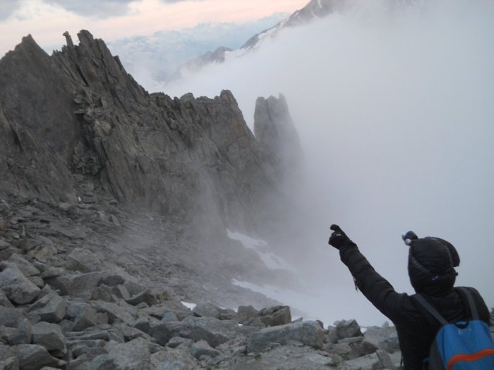 Stiamo camminando sul lato destro (S) della cresta in cerca di un camino.