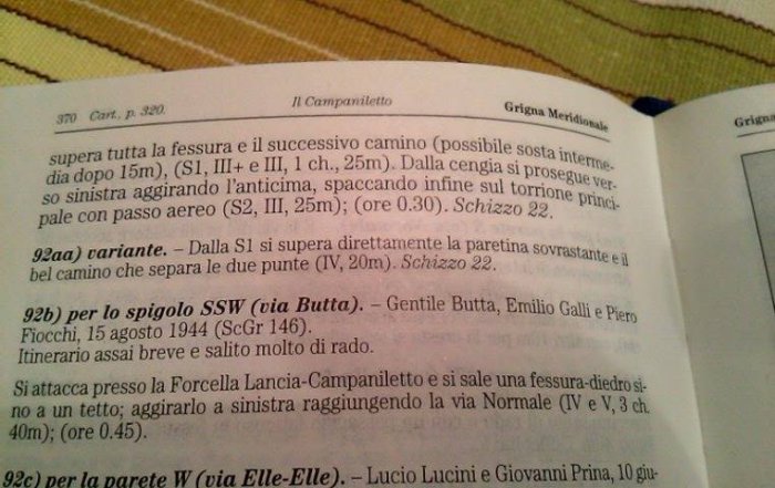 Trovo al suo interno molte contraddizioni: una pagina di introduzione a come affrontare la Grignetta più che ottima e poi un "via per principianti" sulla normale al Campaniletto che OK, come difficoltà non sarà fantasma delle libertà al Cinquantenario, ma è decisamente più pericoloso l'ambiente...