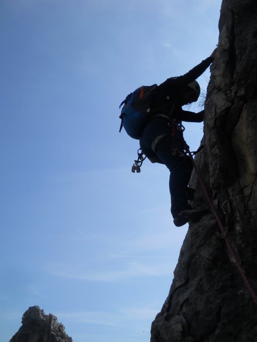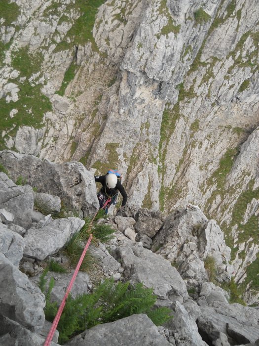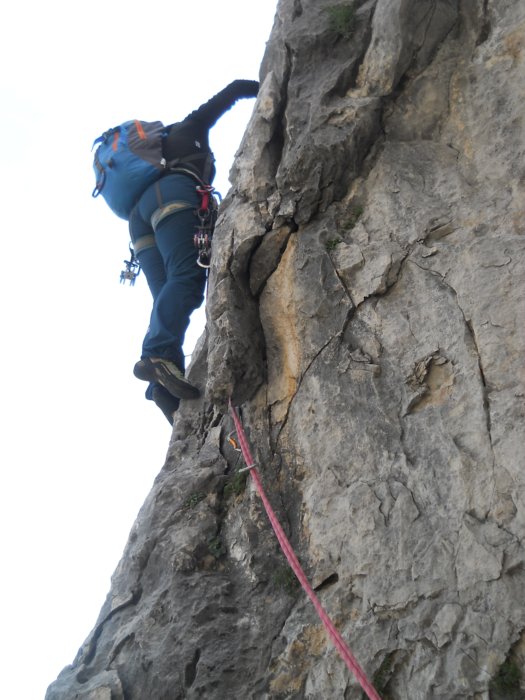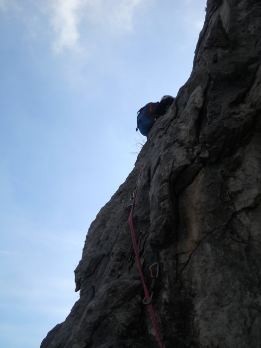 Il tiro è di III ma presenta sempre una grande esposizione, soprattutto nella parte alta in cui, a sinistra, sembra che ci sia il NULLA!