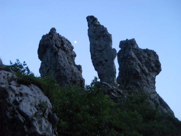 Tre piccole guglie apparentemente animate ci salutano insieme alla Luna...