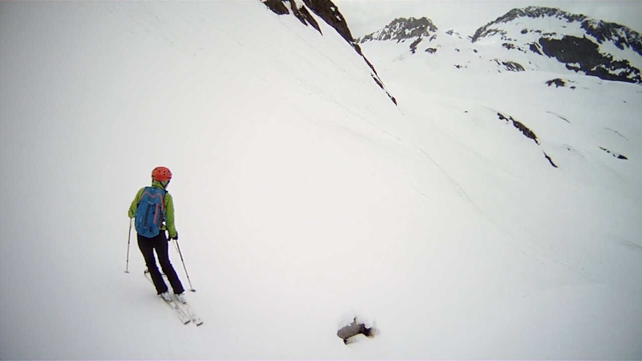 Con il pendio che mostra anche gradini verticali di un metro, e questo appiattimento, è impegnativo decidere dove girare.