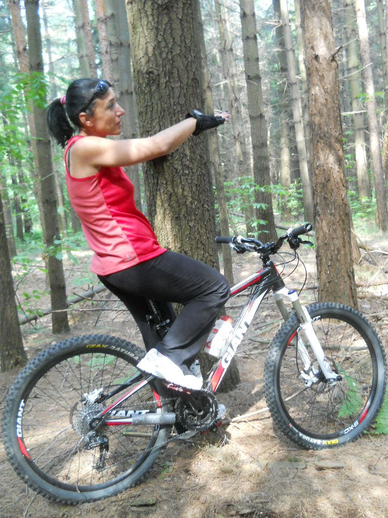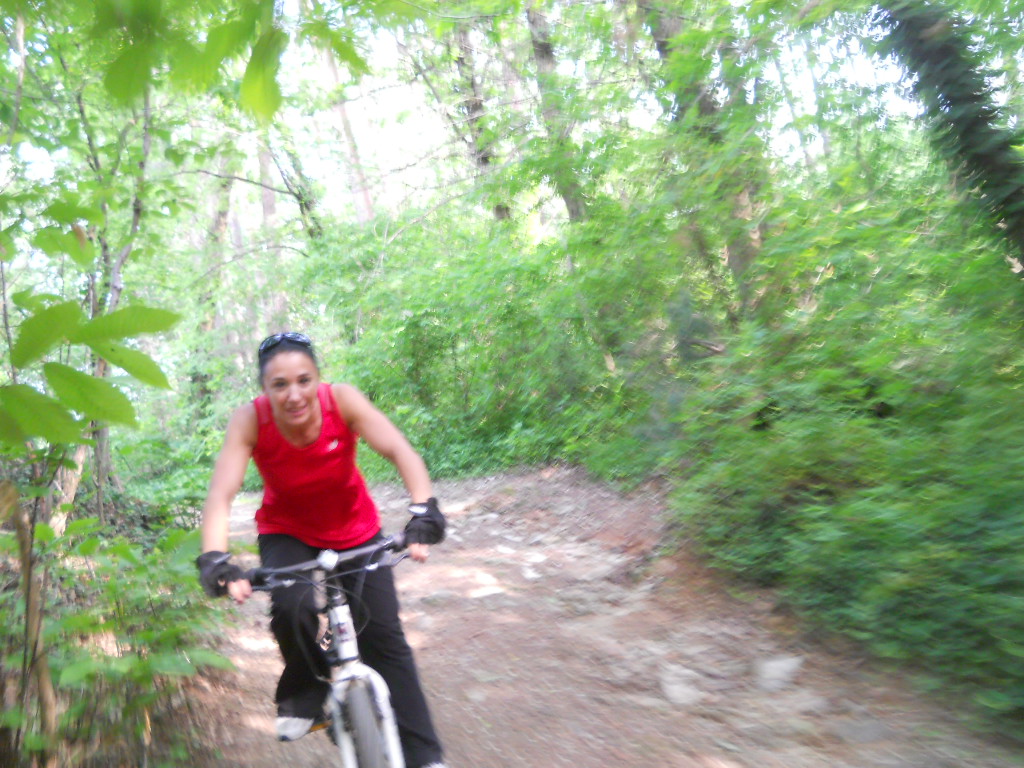 Pure Laura se la cava benissimo a girellare, anche con la sua bike rigidissima che, provandola, mi ricorda molto la mia vecchia StumpJumper...