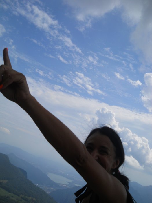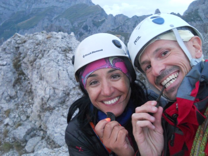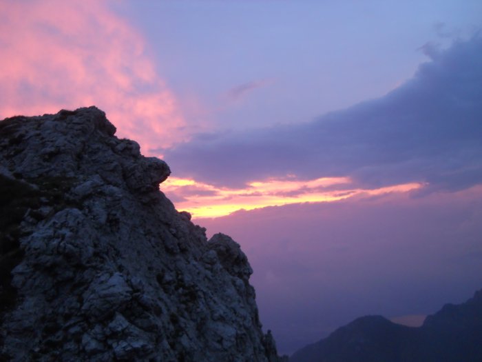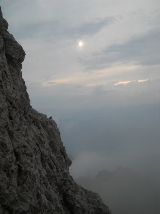 Niente birra in rifugio la sera ma cenetta in cima che, lasciando da parte i fantasmi, come dice lei in carne ed ossa:"Sarà anche vero che partiamo sempre tardi...ma al mezzogiorno il tramonto non c'é!".